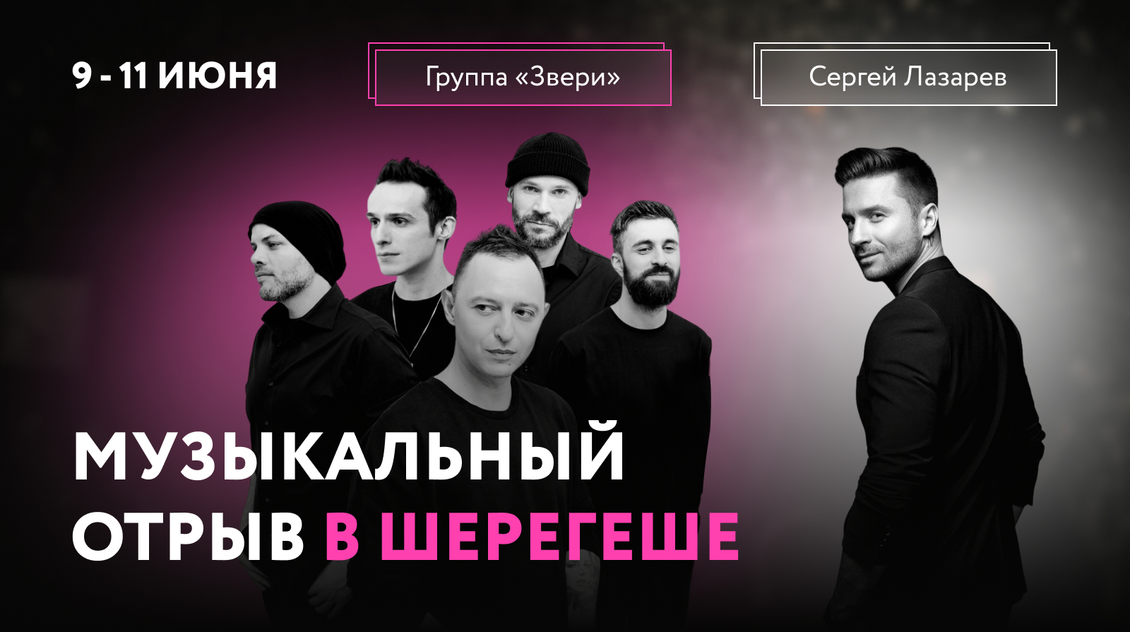 9 июня на открытии выступит одна из лучших рок-групп «Звери». 10 июня на главной сцене Шерегеша — Сергей Лазарев. До 1 июня билеты по сниженной стоимости!